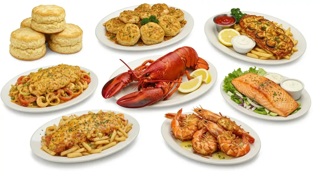 The take-out and delivery business of Red Lobster gives a menu of common seafood, house meals, and sides such as Cheddar Bay Biscuits. The menu is made to be quality and convenient, and their algorithm is available via their website or delivery apps such as DoorDash and Uber Eats, and is packaged in a manner that keeps it fresh and easy to transport.