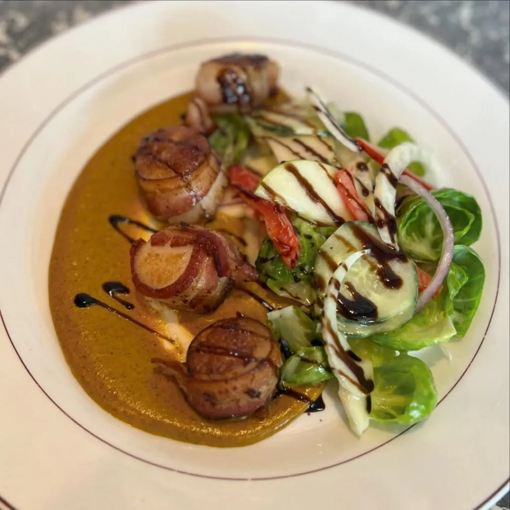 | Starters | Signature Jumbo Shrimp Cocktail, Bacon Wrapped Sea Scallops |