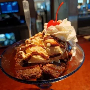 | Brownie Overboard® | Warm brownie with ice cream, fudge, caramel & cream. | $9.49 |